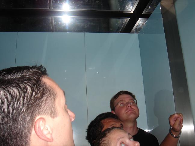 "egg-shaped" elevator that shoots you up at incredible speeds; from the first